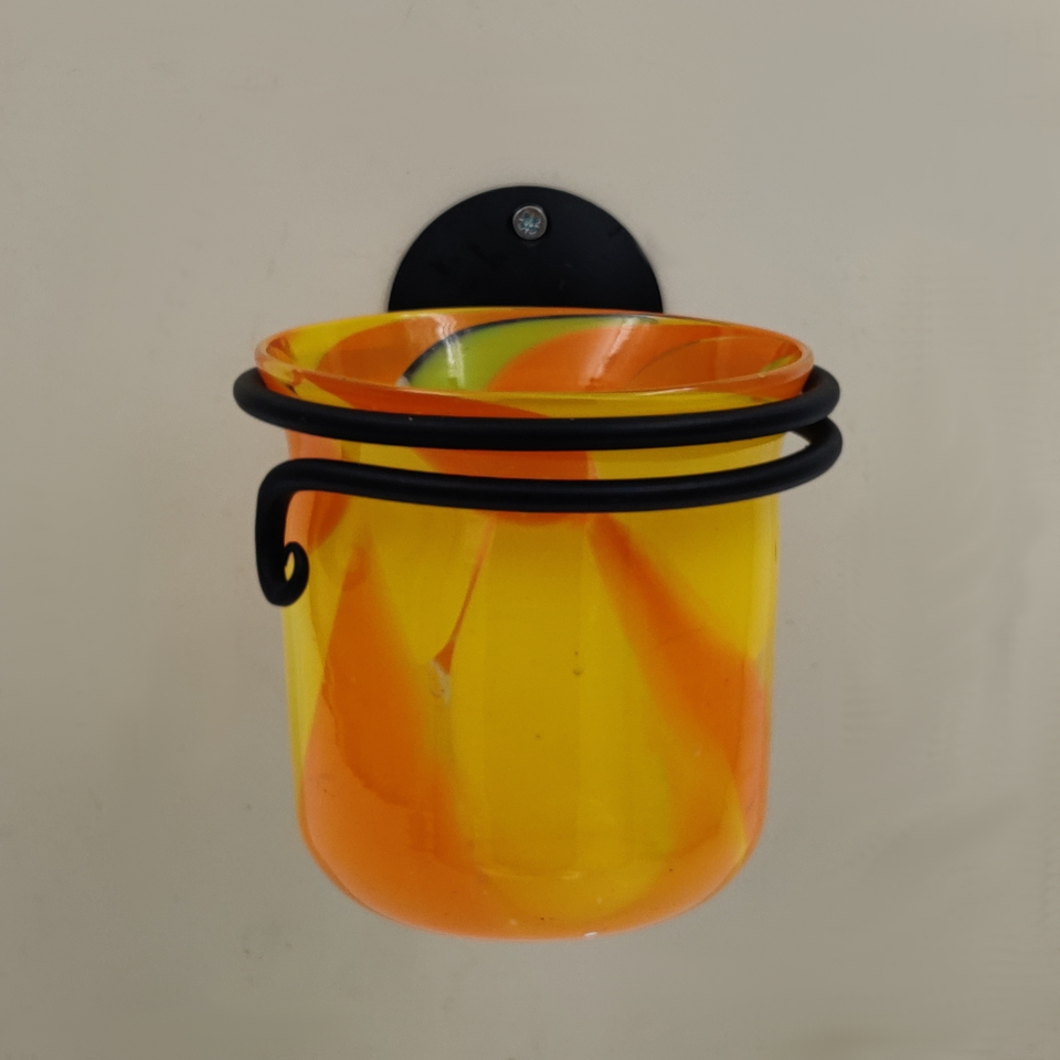 Takolasin Seinäruukkujen avulla saat kasveja seinillesi, tai voi sinne vaikka jotain valojakin laittaa. Lasisen astian mukana tulee takorautainen teline, jonka saa seinään ruuvilla.